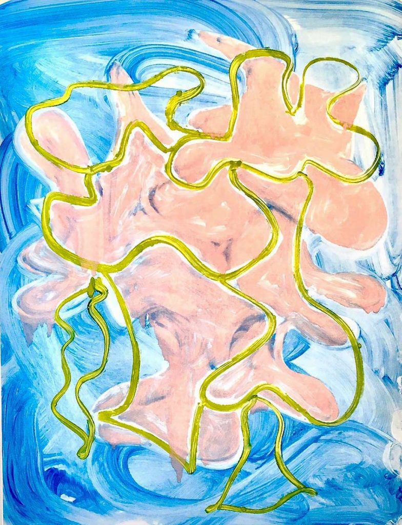 In the process of making monotypes, there is an opportunity for intense experimentation for the artist. Inks are painted onto aluminum or plastic plates, passed through the press as many times as needed and the ghost, the remaining ink from the prior pass, often used to start the next print. This reworking and recombining plates allows new images to evolve quickly, with each resulting print being unique just like a painting or drawing.